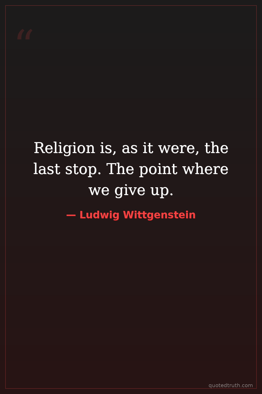 Religion is, as it were, the last stop. The point where we give up.