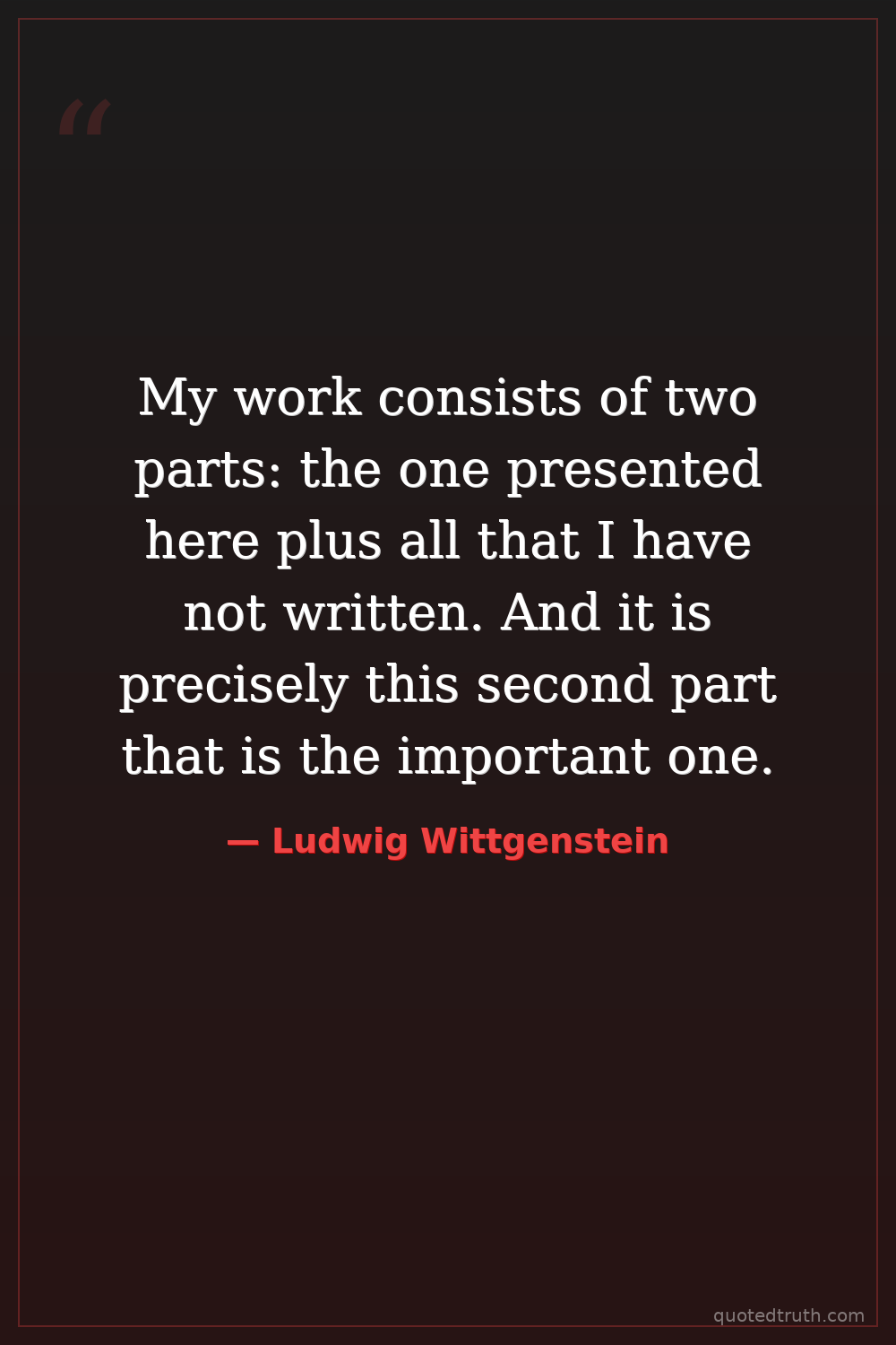 My work consists of two parts: the one presented here plus all that I have not written. And it is precisely this second part that is the important one.