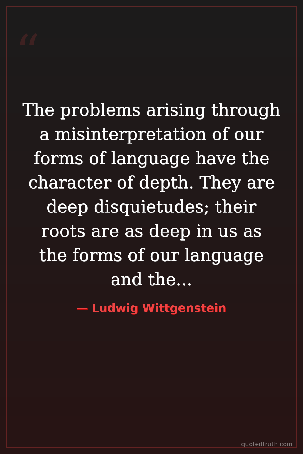 The problems arising through a misinterpretation of our forms of language have the character of depth. They are deep disquietudes; their roots are as deep in us as the forms of our language and their significance is as great as the importance of our language.