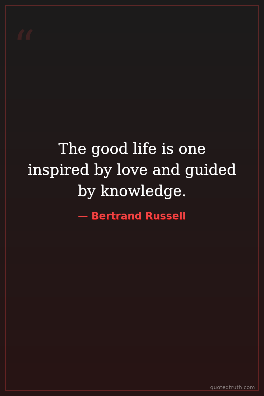 The good life is one inspired by love and guided by knowledge.