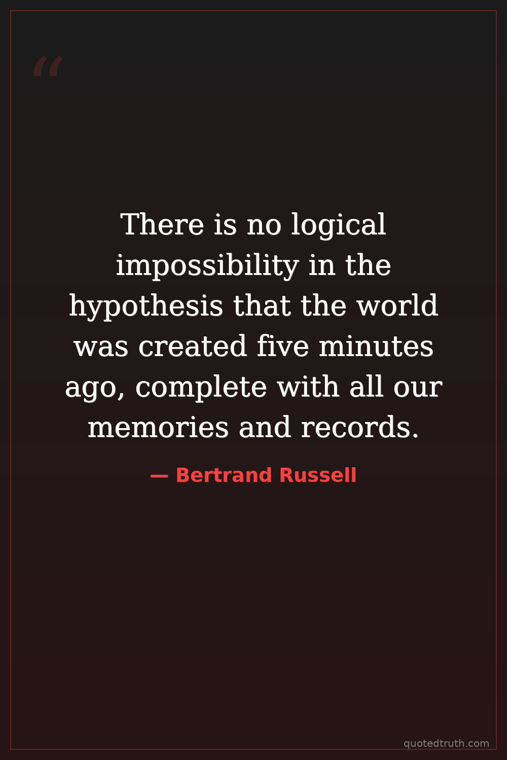 There is no logical impossibility in the hypothesis that the world was created five minutes ago, complete with all our memories and records.