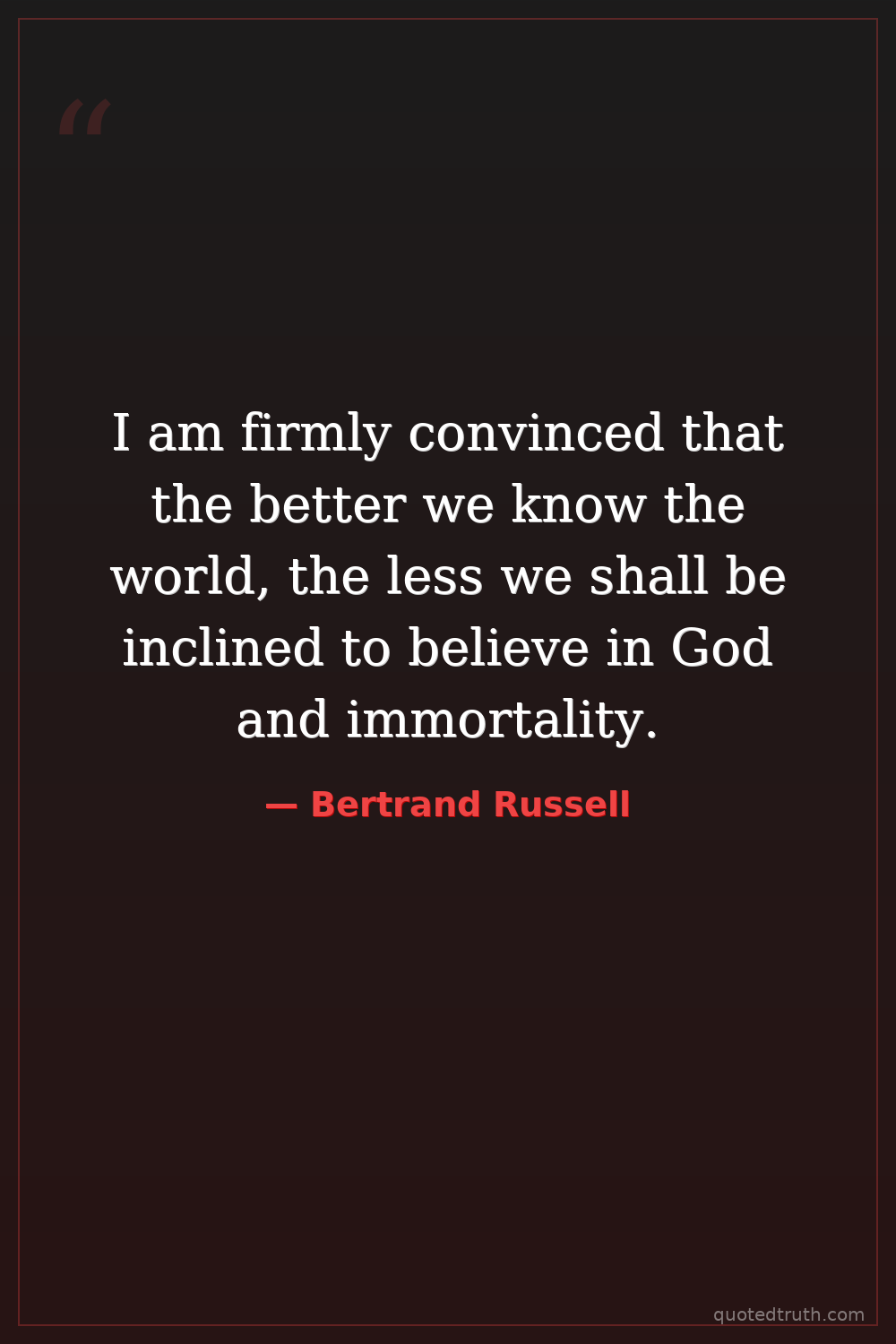 I am firmly convinced that the better we know the world, the less we shall be inclined to believe in God and immortality.