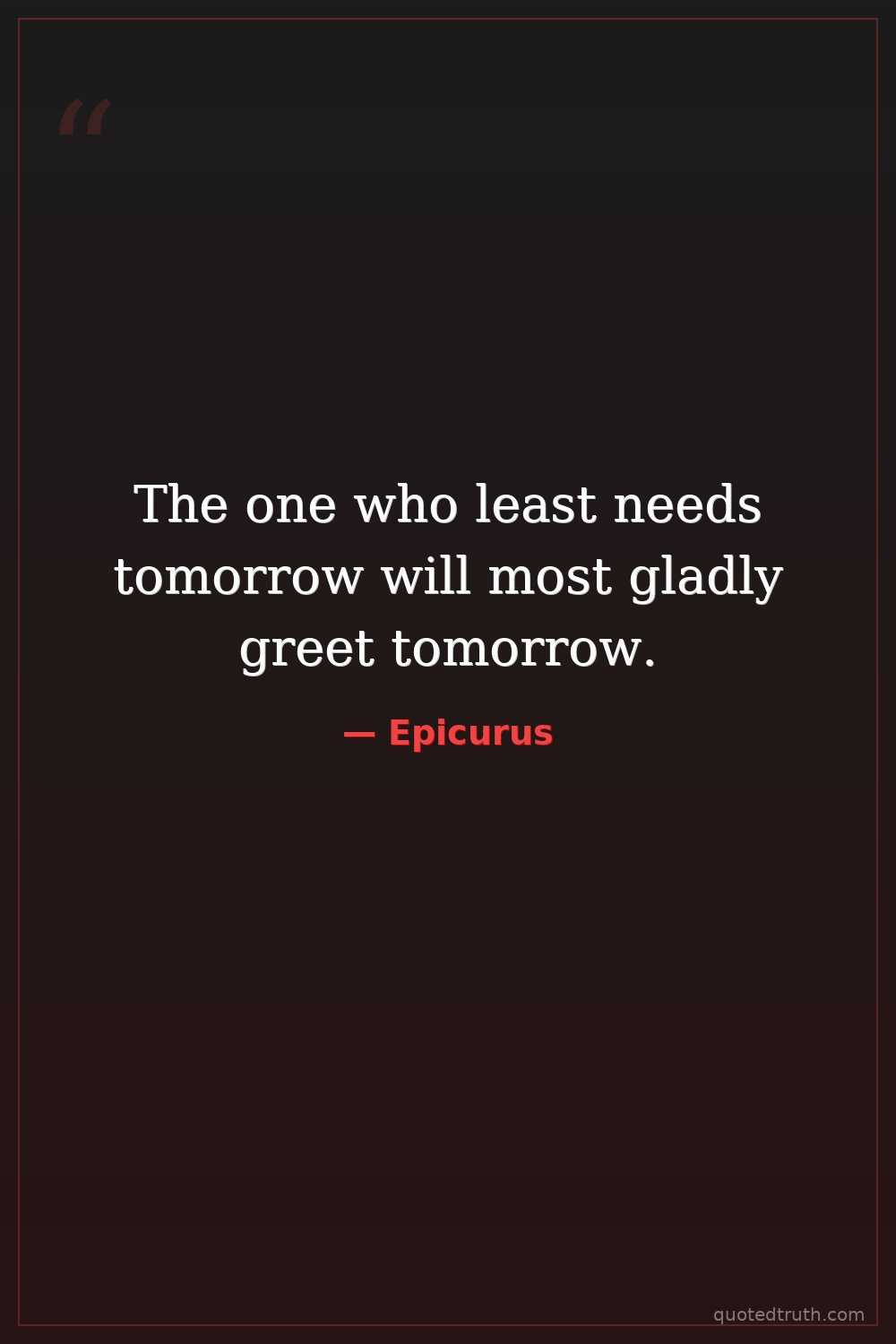 The one who least needs tomorrow will most gladly greet tomorrow.