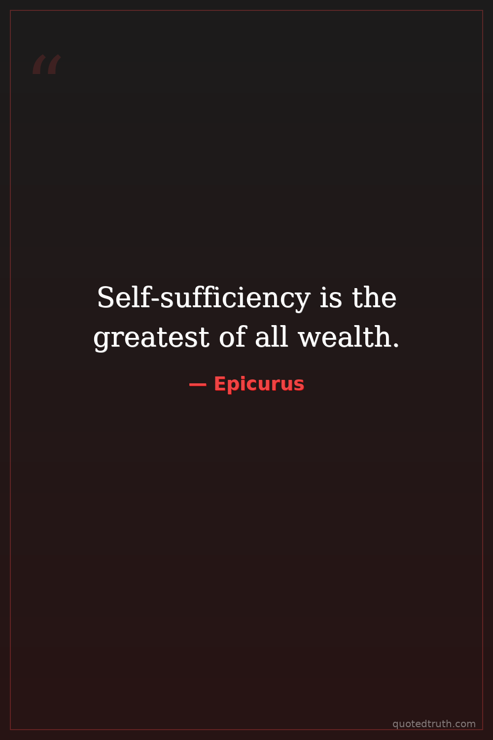 Self-sufficiency is the greatest of all wealth.