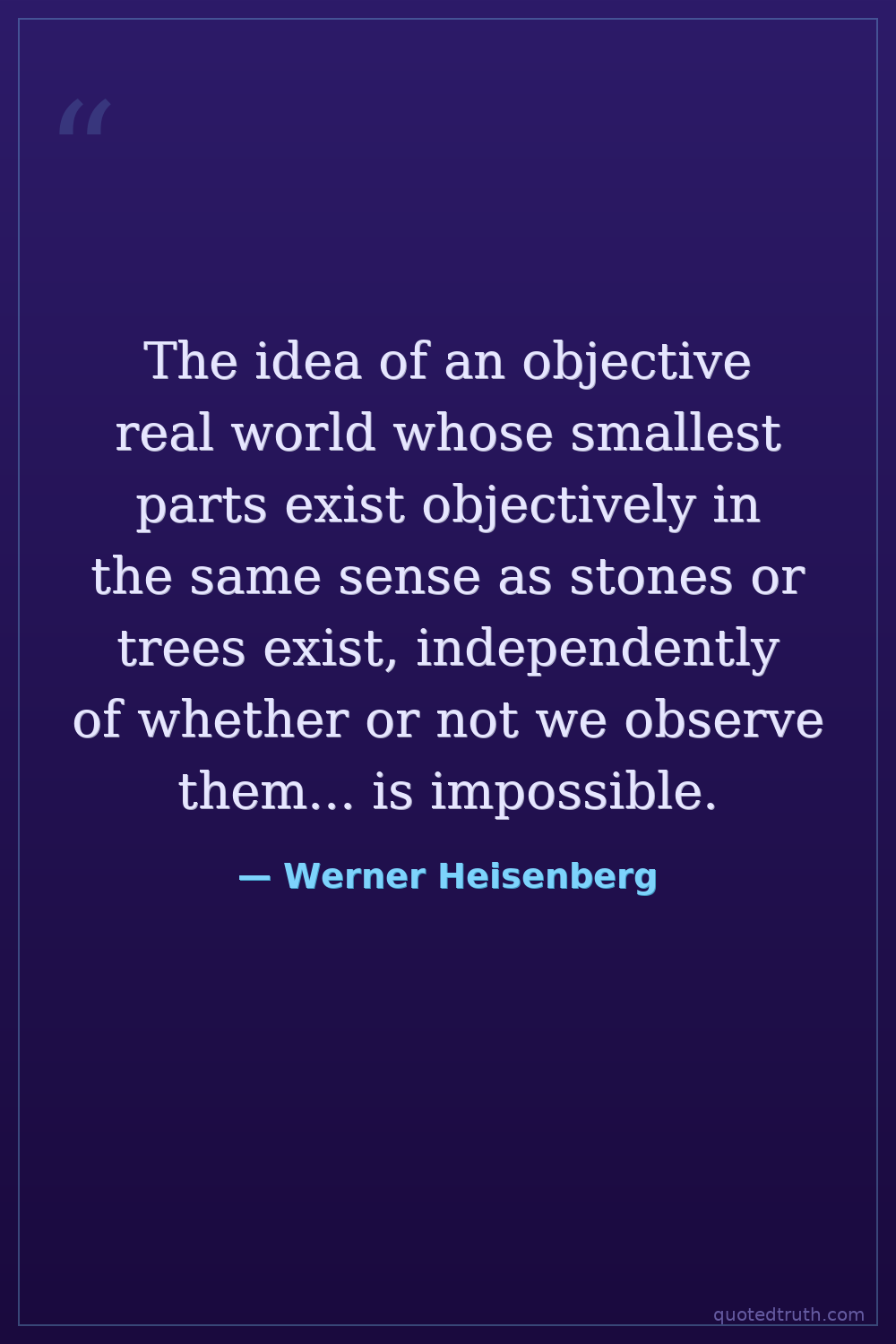 The idea of an objective real world whose smallest parts exist objectively in the same sense as stones or trees exist, independently of whether or not we observe them... is impossible.