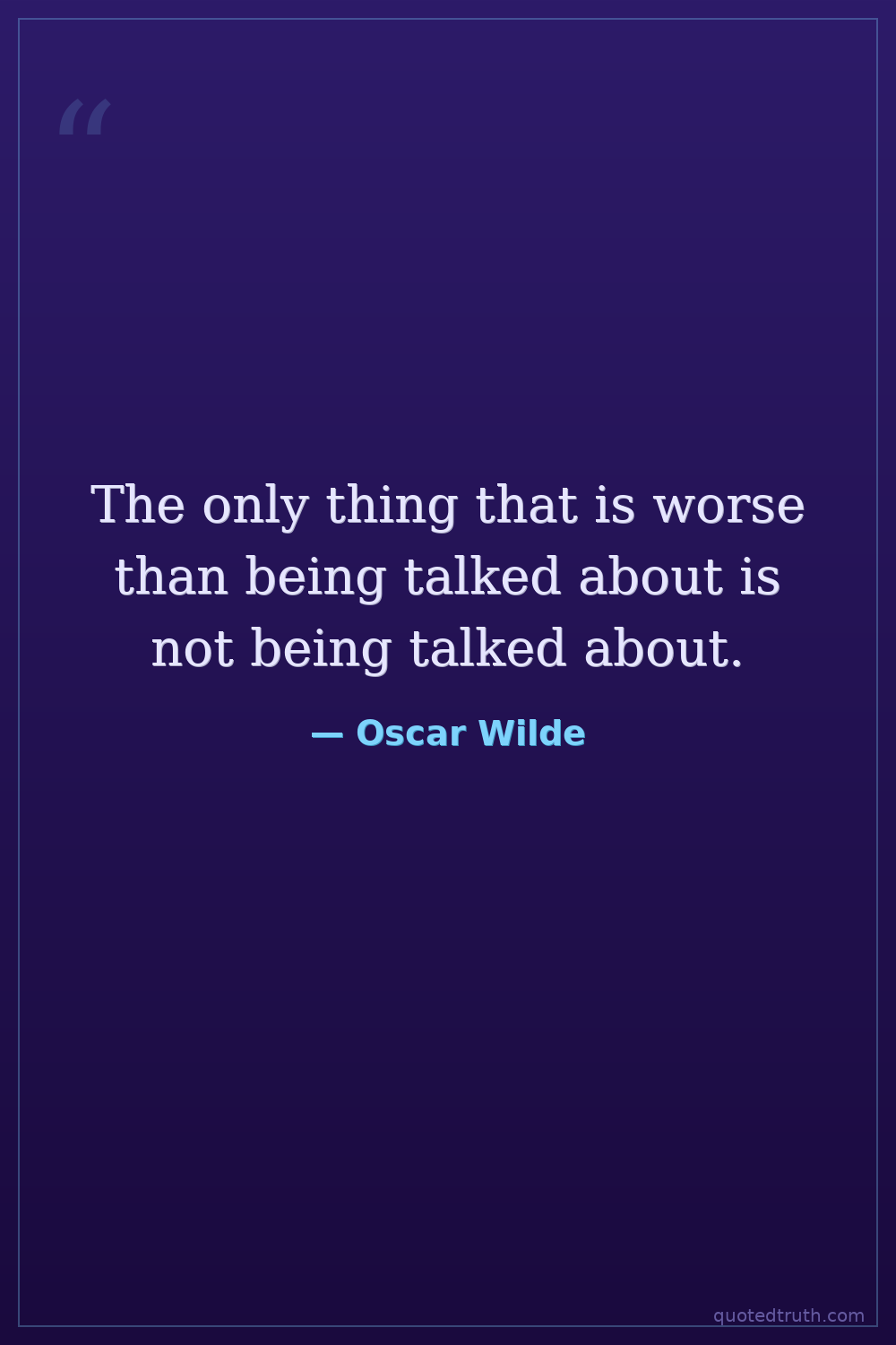 The only thing that is worse than being talked about is not being talked about.