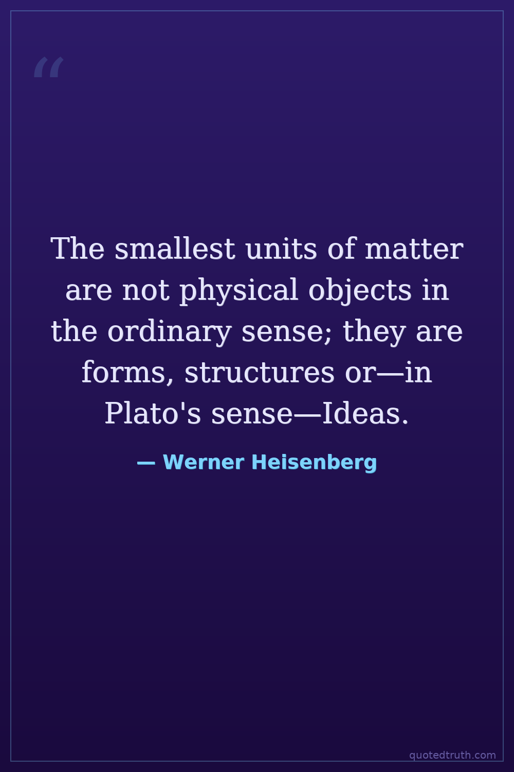 The smallest units of matter are not physical objects in the ordinary sense; they are forms, structures or—in Plato's sense—Ideas.