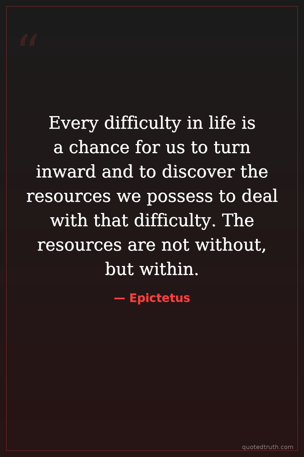 Every difficulty in life is a chance for us to turn inward and to discover the resources we possess to deal with that difficulty. The resources are not without, but within.