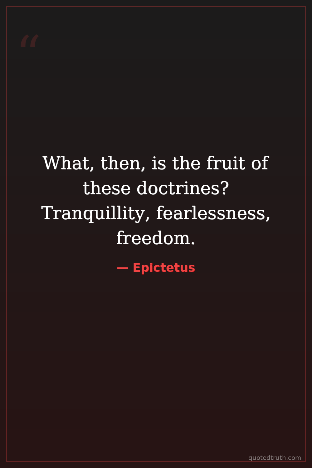 What, then, is the fruit of these doctrines? Tranquillity, fearlessness, freedom.