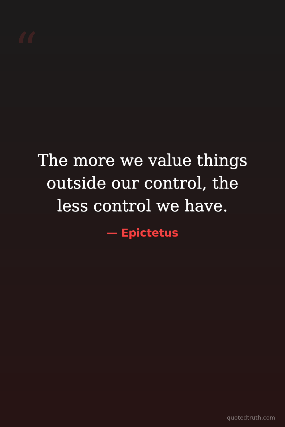 The more we value things outside our control, the less control we have.