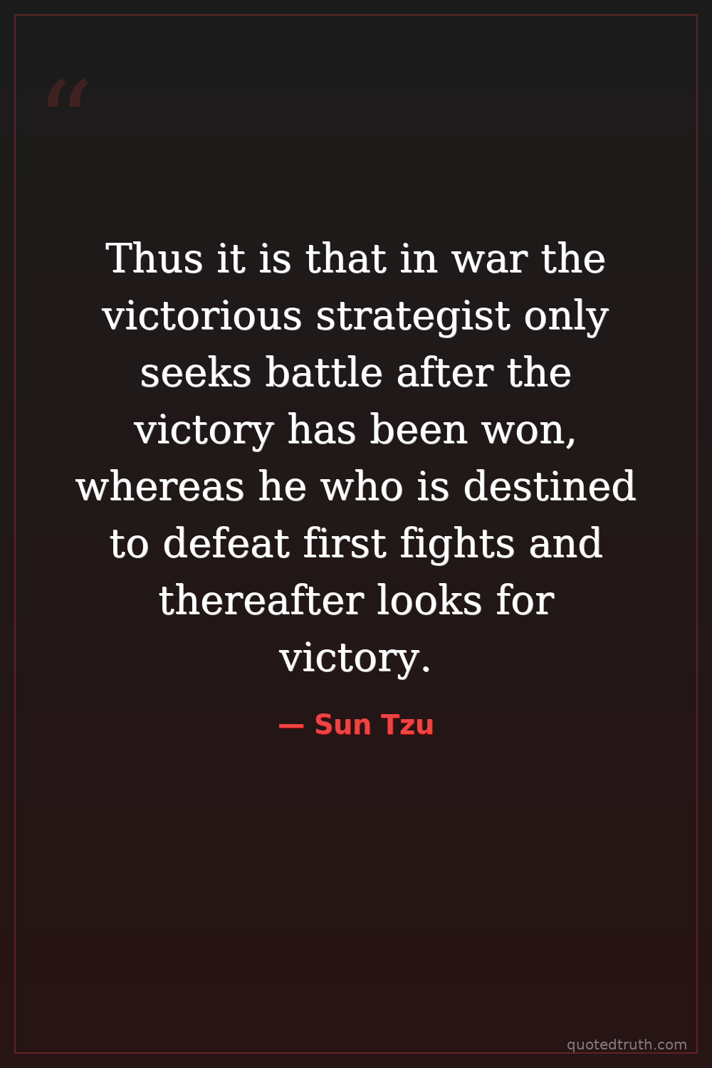 Thus it is that in war the victorious strategist only seeks battle after the victory has been won, whereas he who is destined to defeat first fights and thereafter looks for victory.