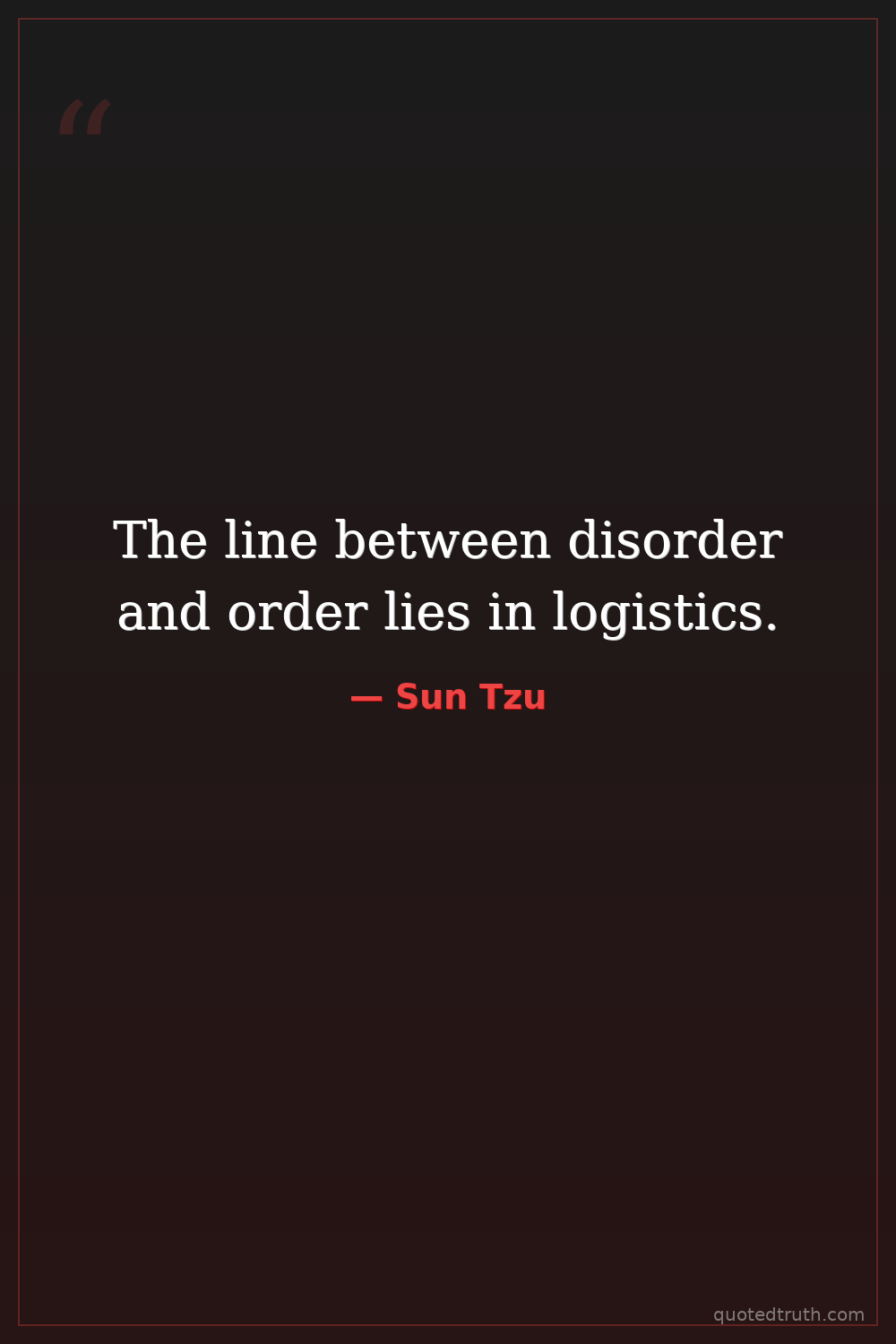 The line between disorder and order lies in logistics.