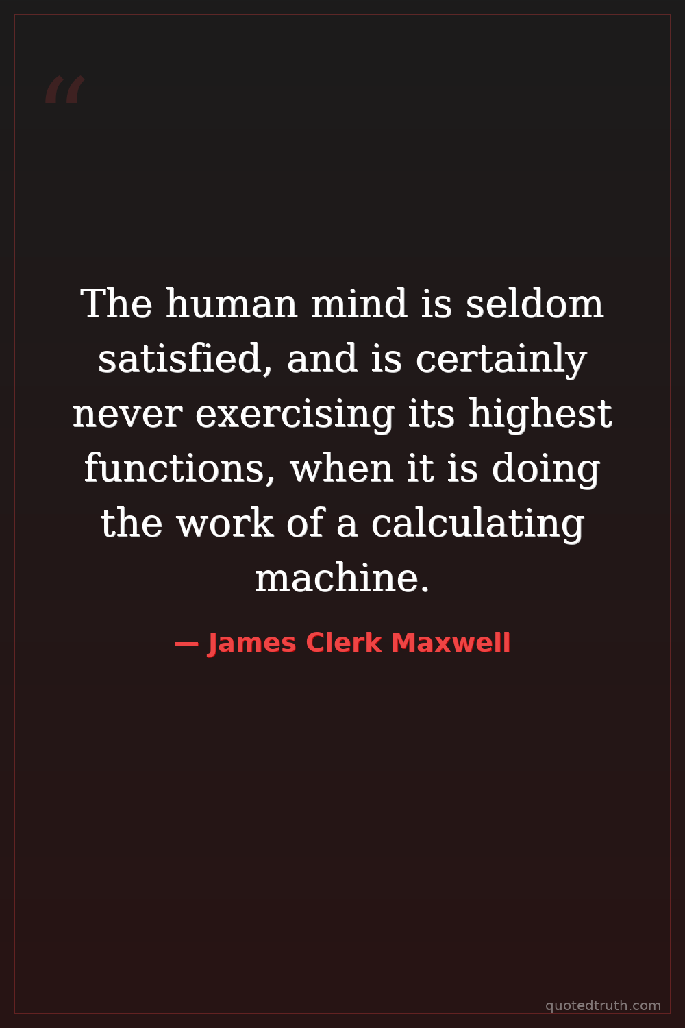 The human mind is seldom satisfied, and is certainly never exercising its highest functions, when it is doing the work of a calculating machine.