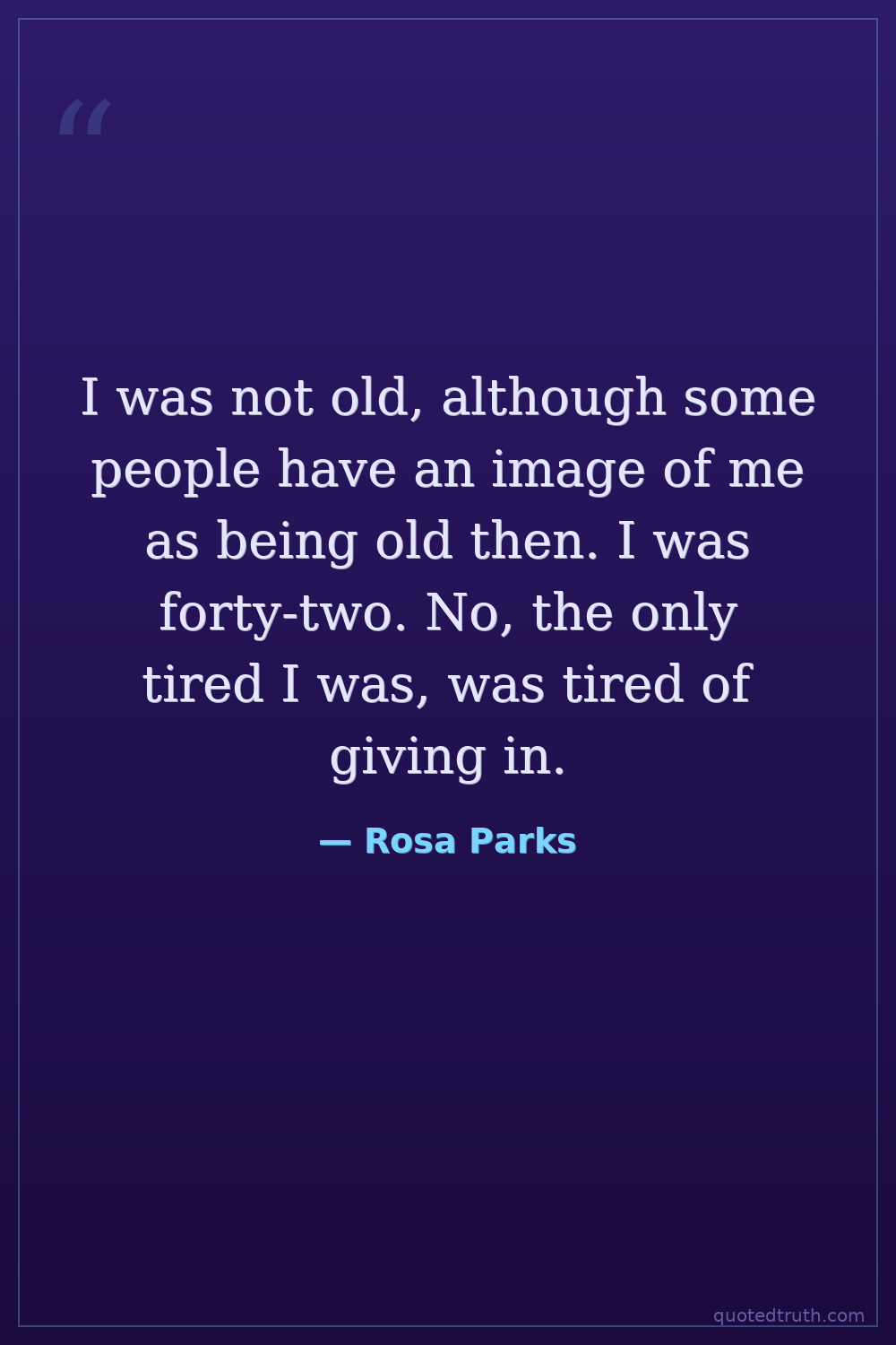 I was not old, although some people have an image of me as being old then. I was forty-two. No, the only tired I was, was tired of giving in.