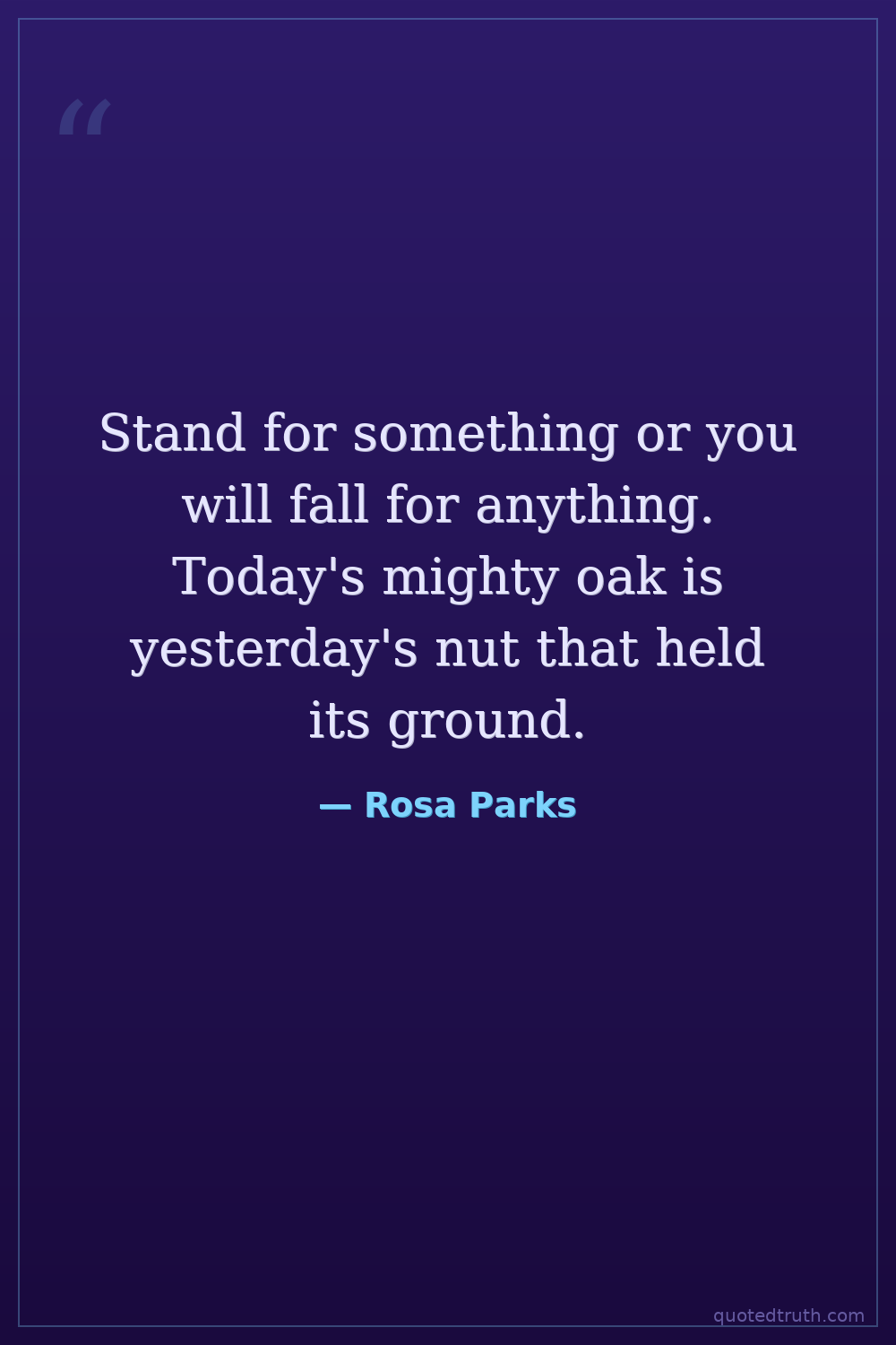 Stand for something or you will fall for anything. Today's mighty oak is yesterday's nut that held its ground.