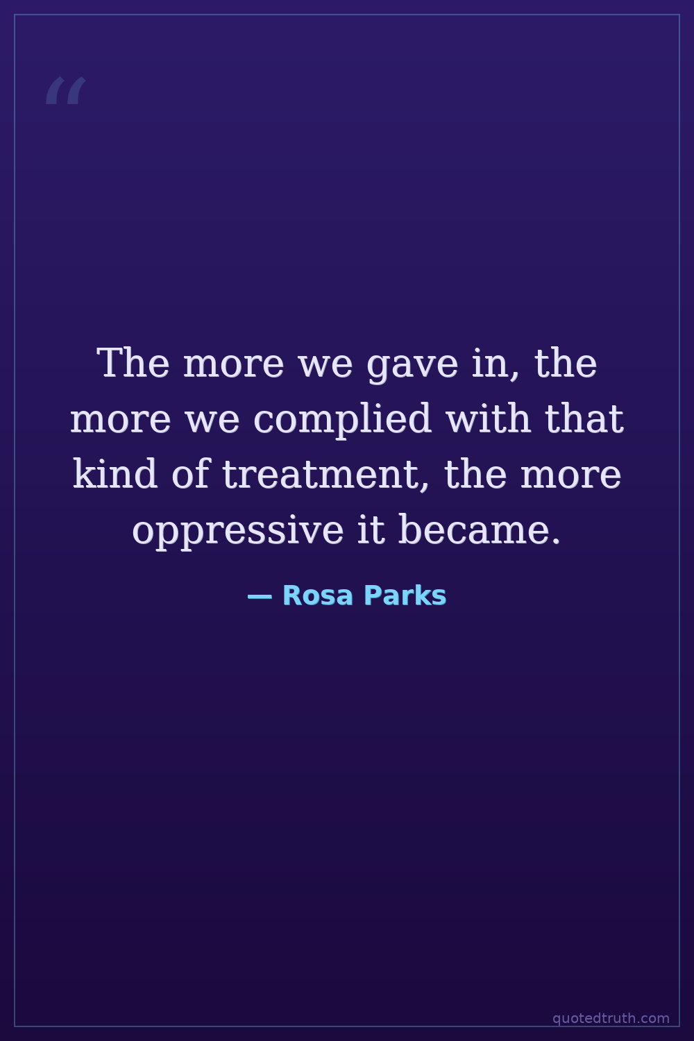 The more we gave in, the more we complied with that kind of treatment, the more oppressive it became.
