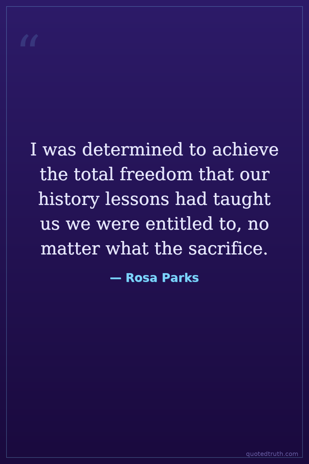 I was determined to achieve the total freedom that our history lessons had taught us we were entitled to, no matter what the sacrifice.