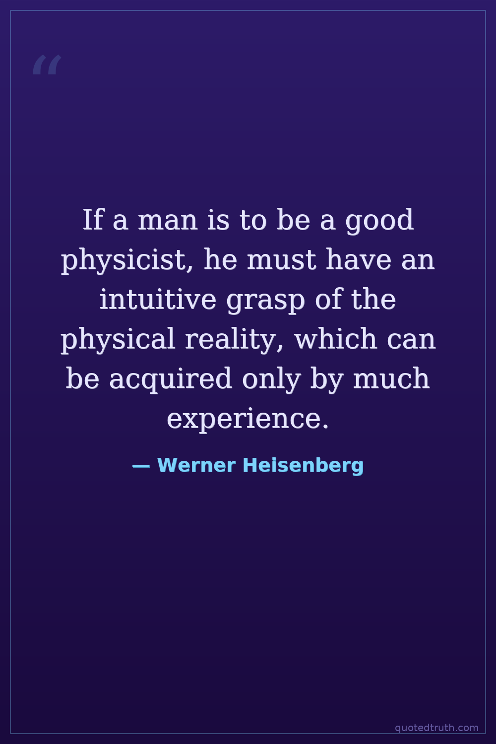 If a man is to be a good physicist, he must have an intuitive grasp of the physical reality, which can be acquired only by much experience.
