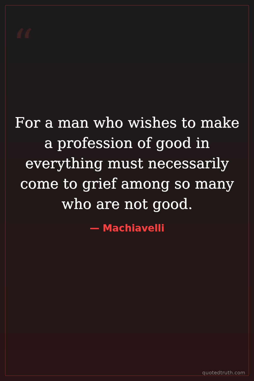 For a man who wishes to make a profession of good in everything must necessarily come to grief among so many who are not good.