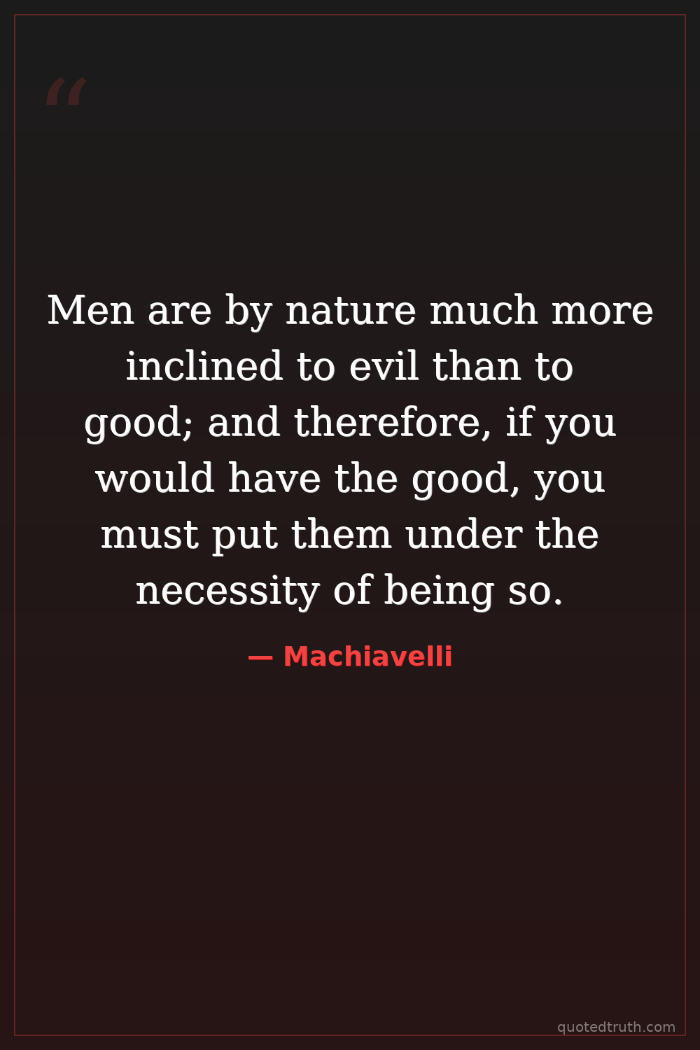 Men are by nature much more inclined to evil than to good; and therefore, if you would have the good, you must put them under the necessity of being so.