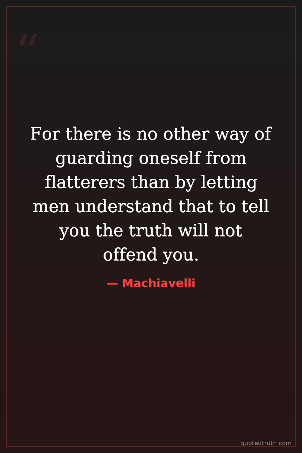 For there is no other way of guarding oneself from flatterers than by letting men understand that to tell you the truth will not offend you.