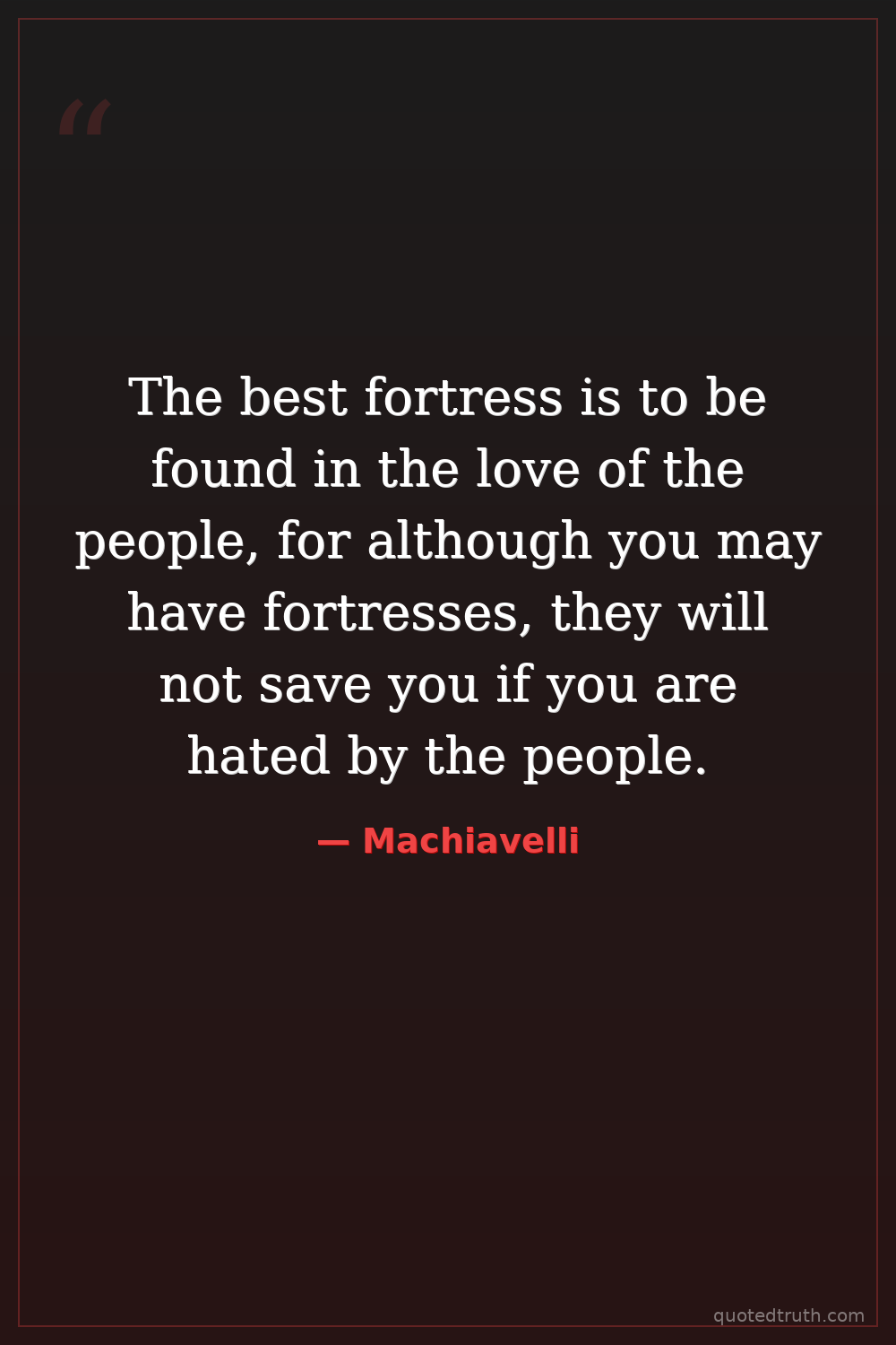 The best fortress is to be found in the love of the people, for although you may have fortresses, they will not save you if you are hated by the people.