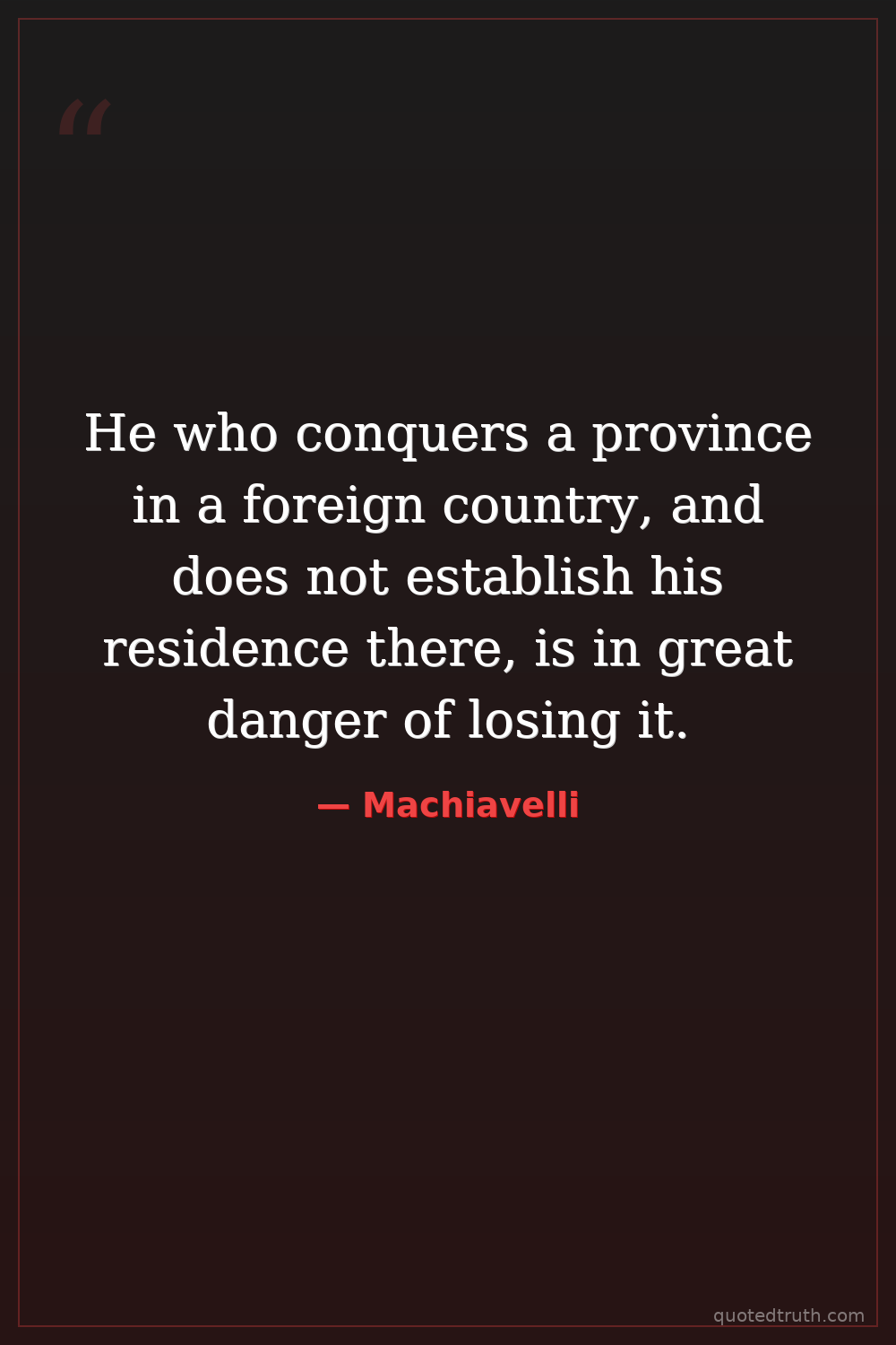 He who conquers a province in a foreign country, and does not establish his residence there, is in great danger of losing it.