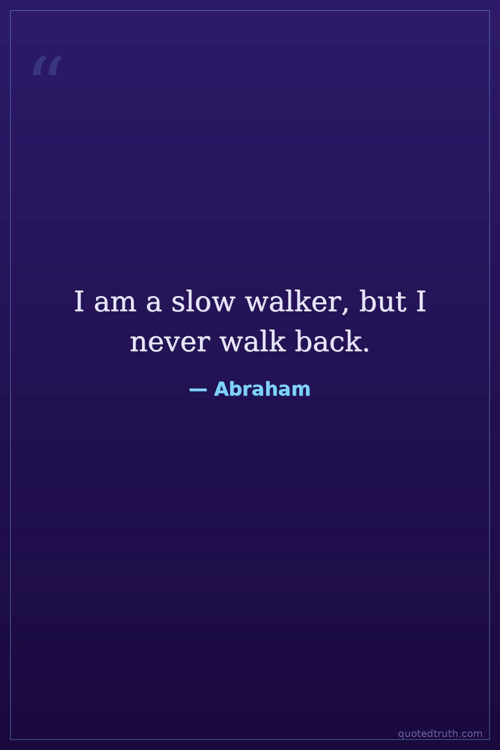 I am a slow walker, but I never walk back.