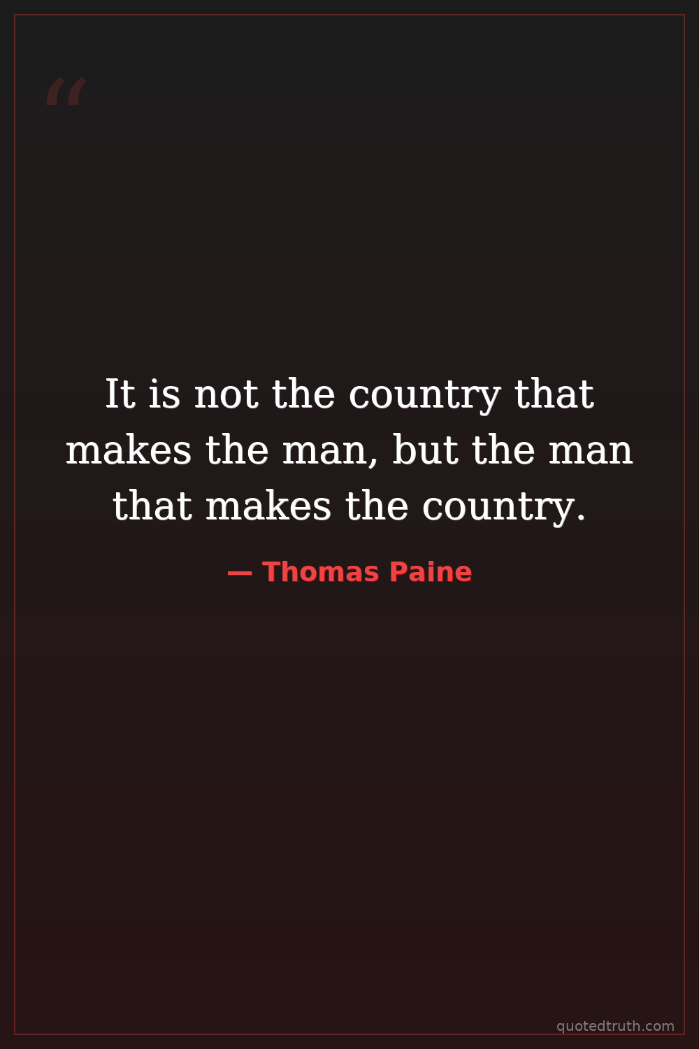 It is not the country that makes the man, but the man that makes the country.