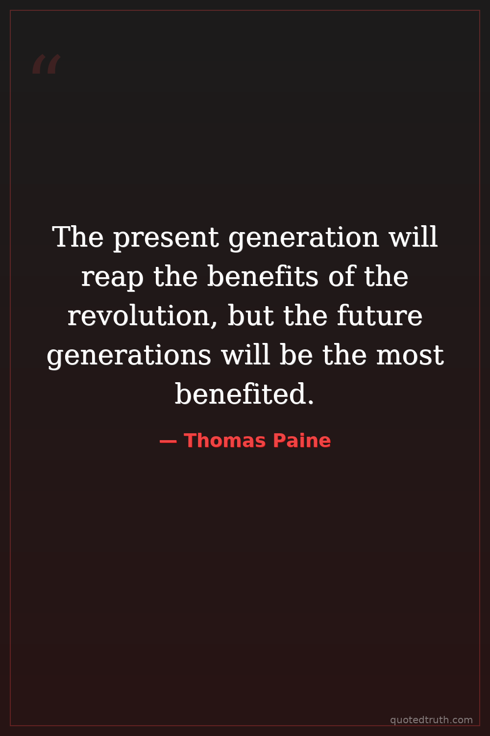 The present generation will reap the benefits of the revolution, but the future generations will be the most benefited.