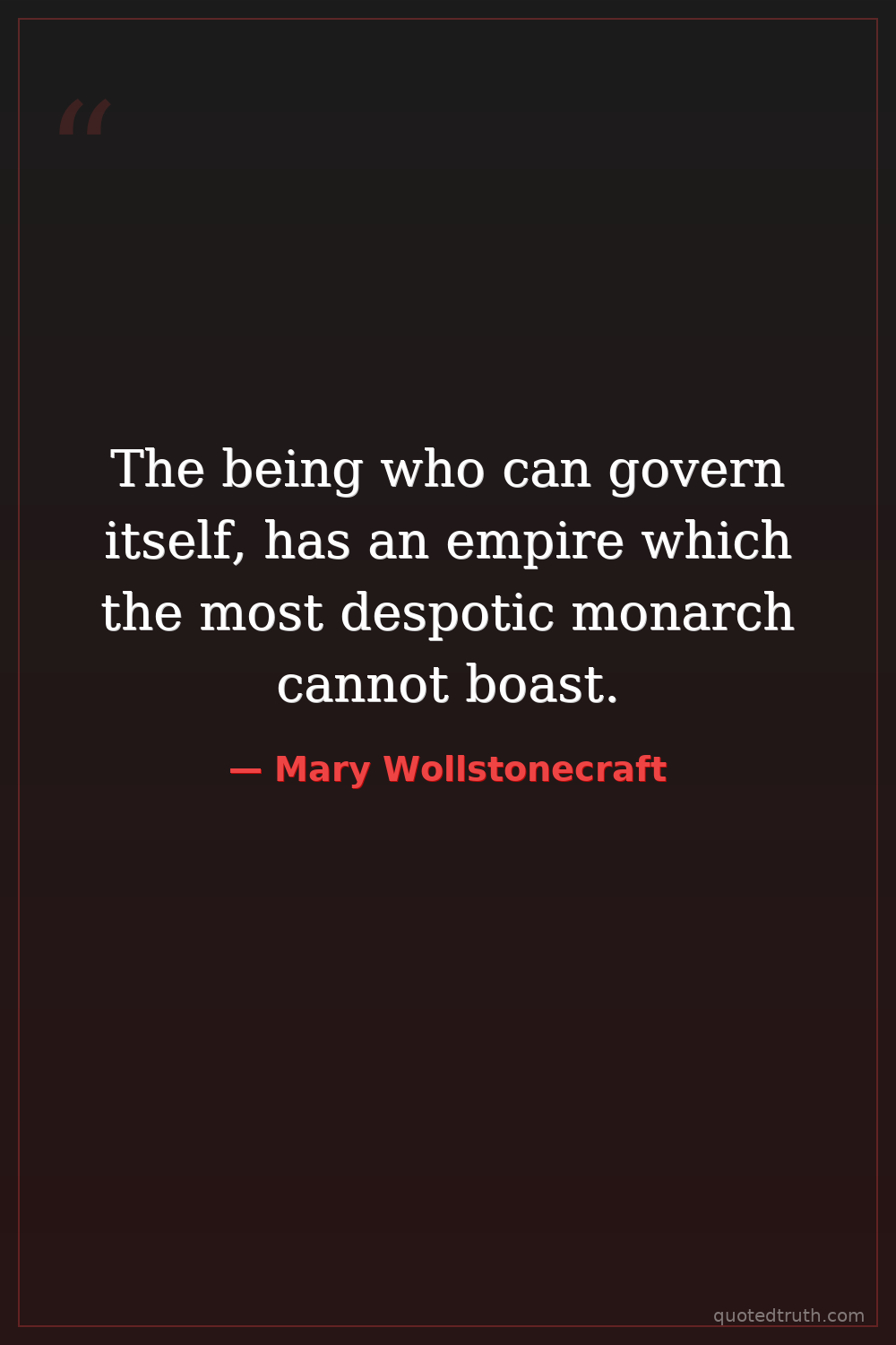 The being who can govern itself, has an empire which the most despotic monarch cannot boast.
