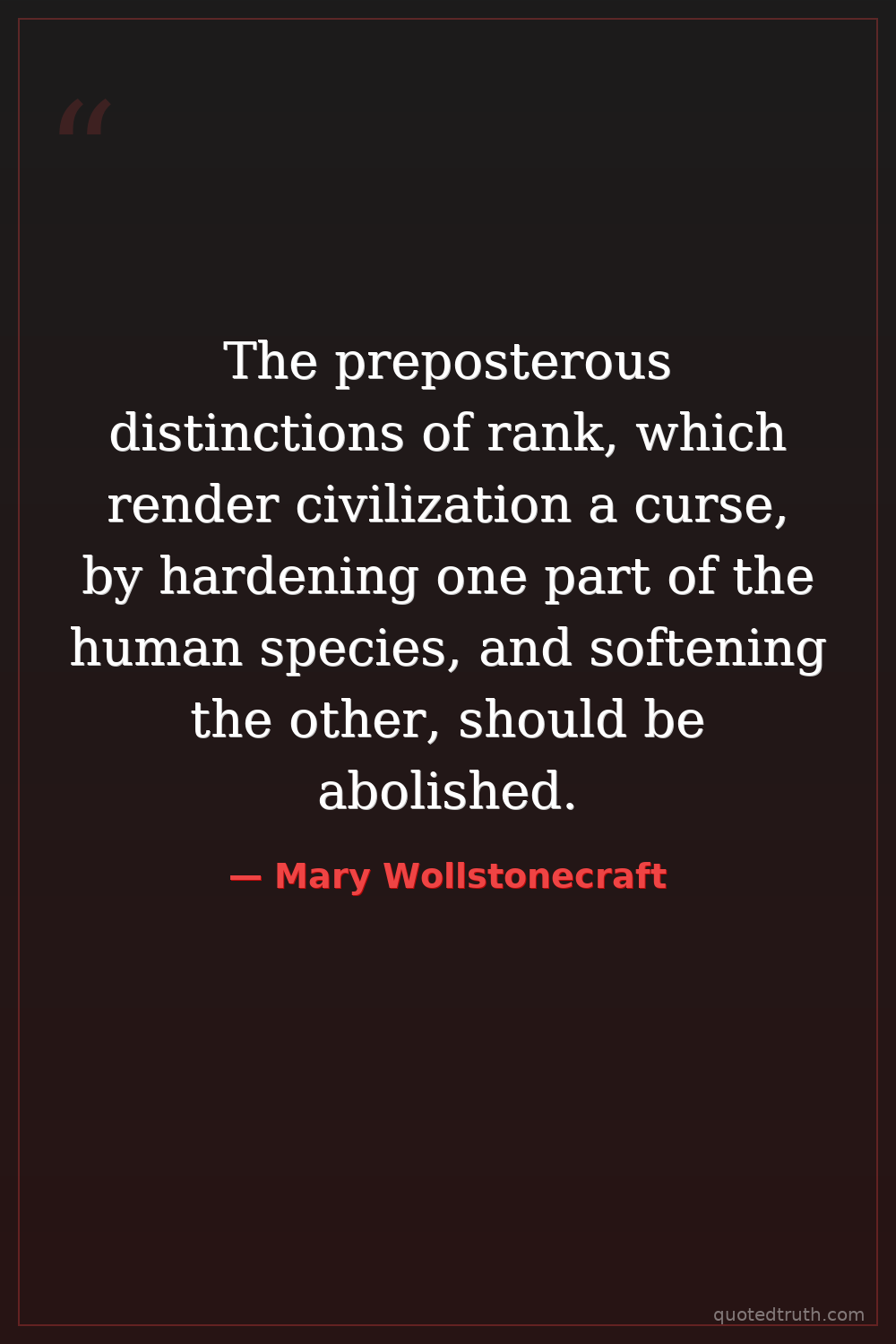 The preposterous distinctions of rank, which render civilization a curse, by hardening one part of the human species, and softening the other, should be abolished.
