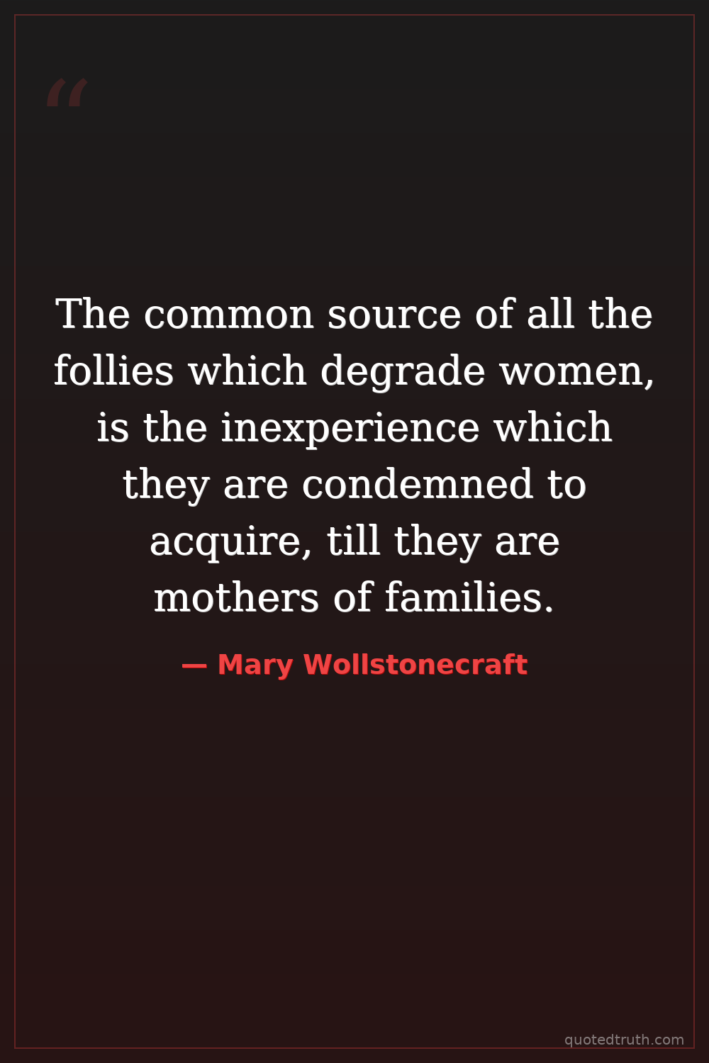 The common source of all the follies which degrade women, is the inexperience which they are condemned to acquire, till they are mothers of families.