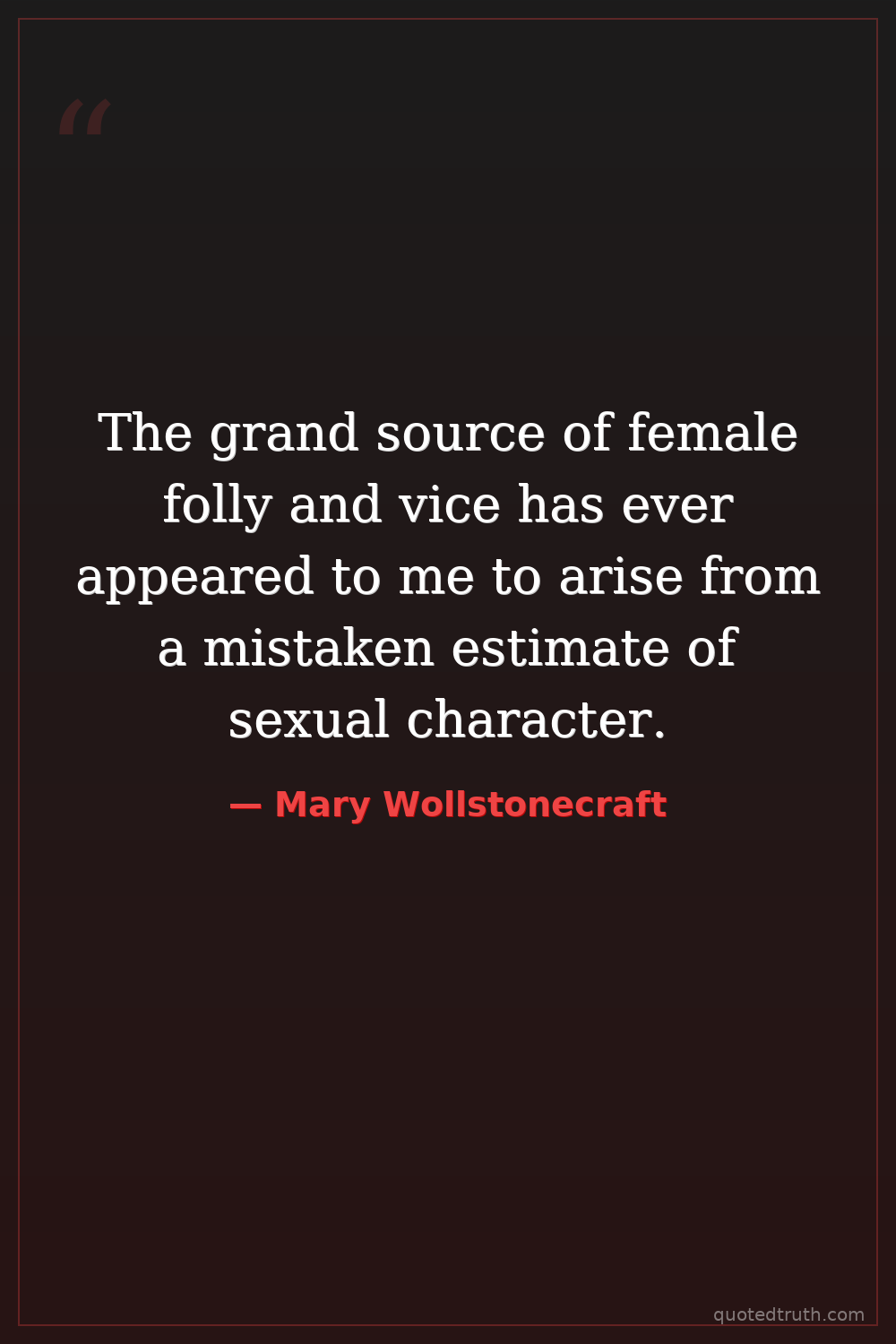 The grand source of female folly and vice has ever appeared to me to arise from a mistaken estimate of sexual character.
