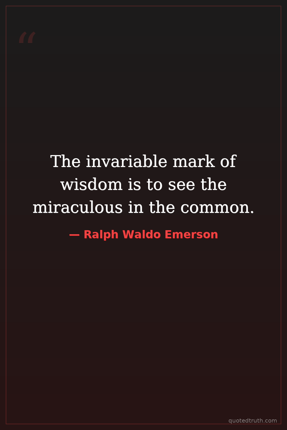 The invariable mark of wisdom is to see the miraculous in the common.