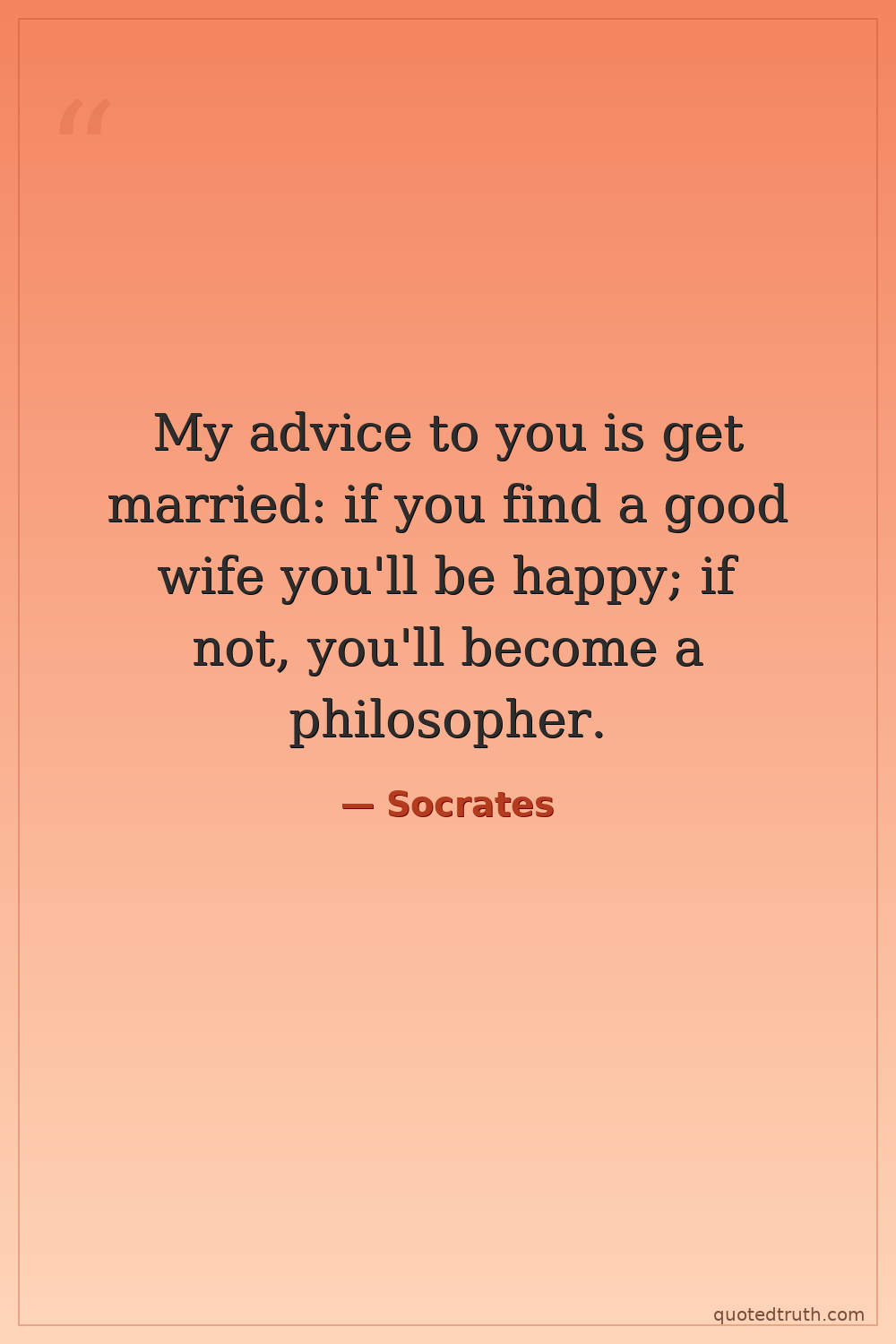 My advice to you is get married: if you find a good wife you'll be happy; if not, you'll become a philosopher.