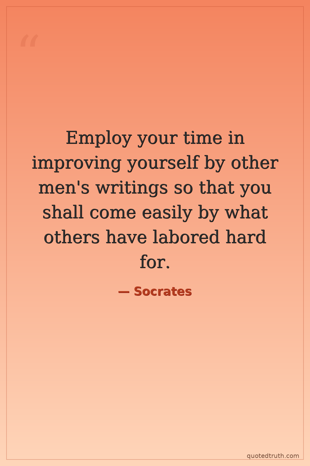 Employ your time in improving yourself by other men's writings so that you shall come easily by what others have labored hard for.