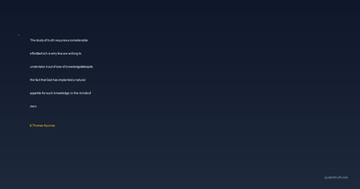 The study of truth requires a considerable effort—which is why few are willing to undertake it out of love of knowledge—despite the fact that God has implanted a natural appetite for such knowledge in the minds of men.