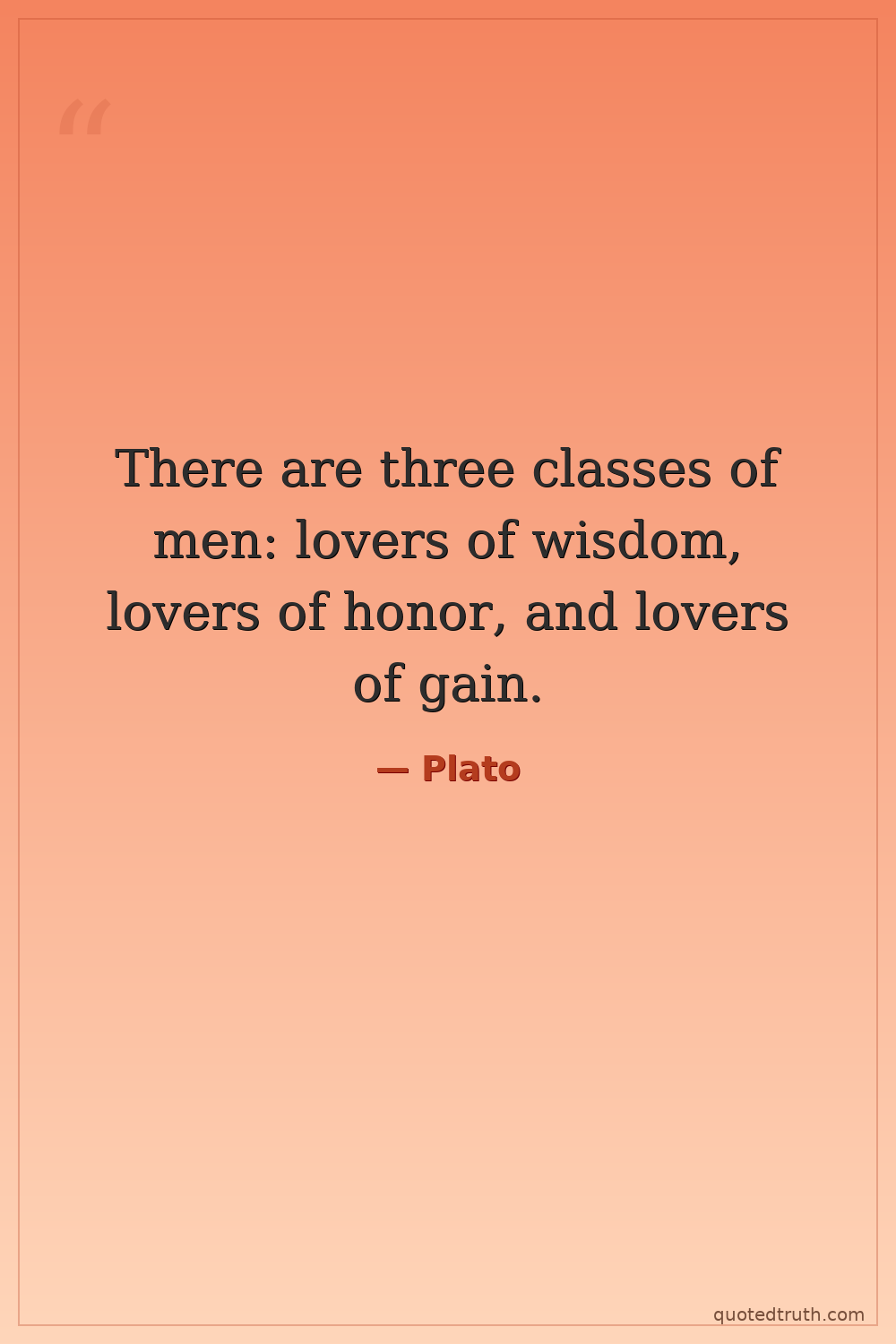 There are three classes of men: lovers of wisdom, lovers of honor, and lovers of gain.