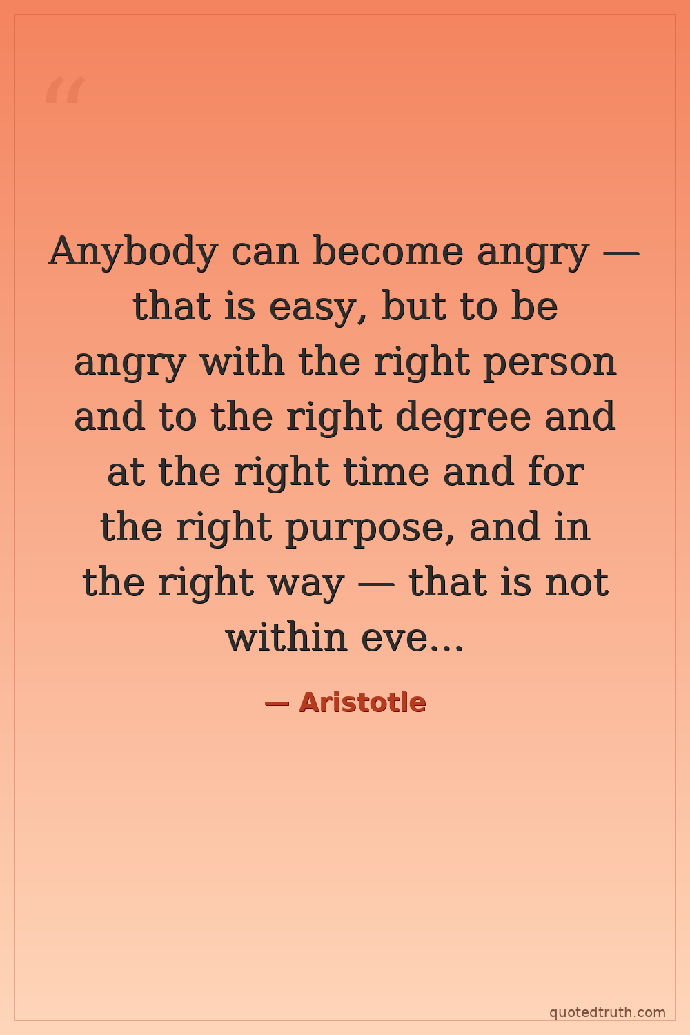 Anybody can become angry — that is easy, but to be angry with the right person and to the right degree and at the right time and for the right purpose, and in the right way — that is not within everybody's power and is not easy.