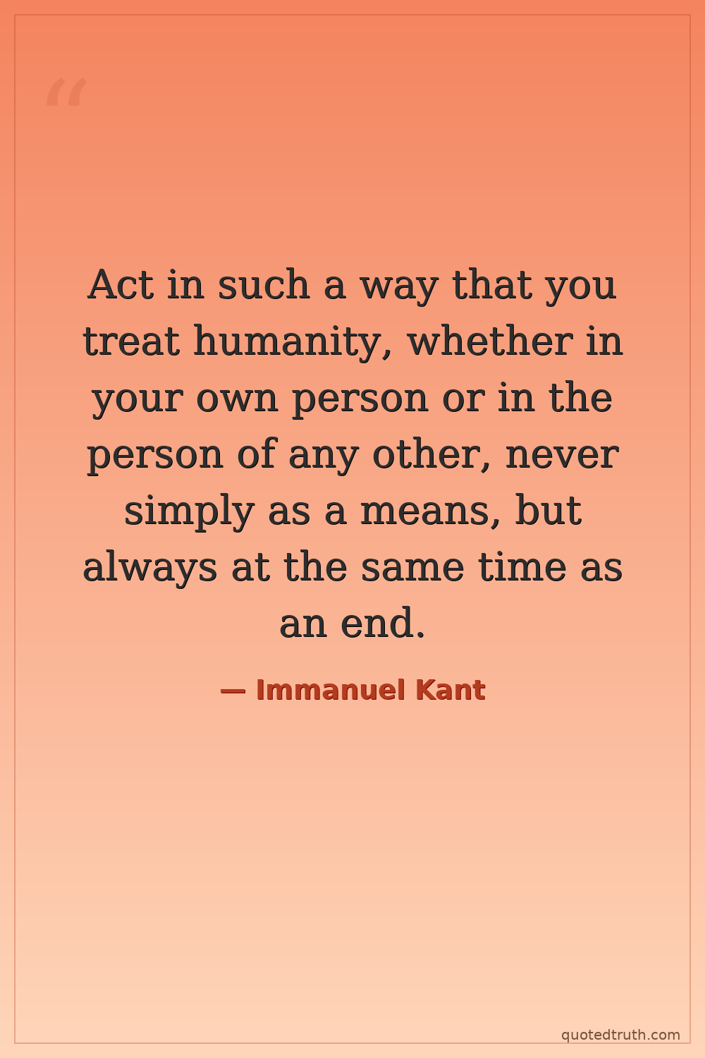 Act in such a way that you treat humanity, whether in your own person or in the person of any other, never simply as a means, but always at the same time as an end.
