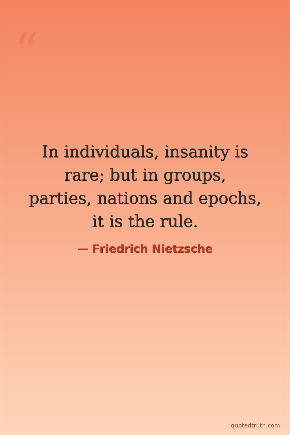 In individuals, insanity is rare; but in groups, parties, nations and epochs, it is the rule.