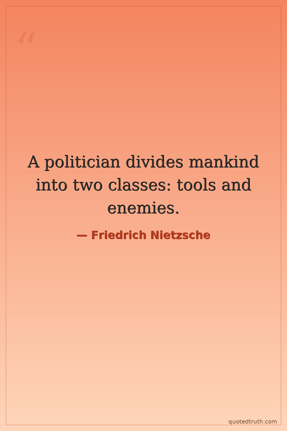 A politician divides mankind into two classes: tools and enemies.