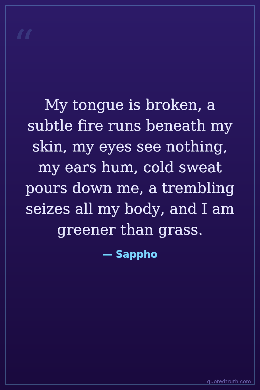 From a lyric poem, Fragment 31 (often referred to as 'Ode to Anactoria' or 'To a Beloved Woman'), describing the physical effects of love/jealousy.