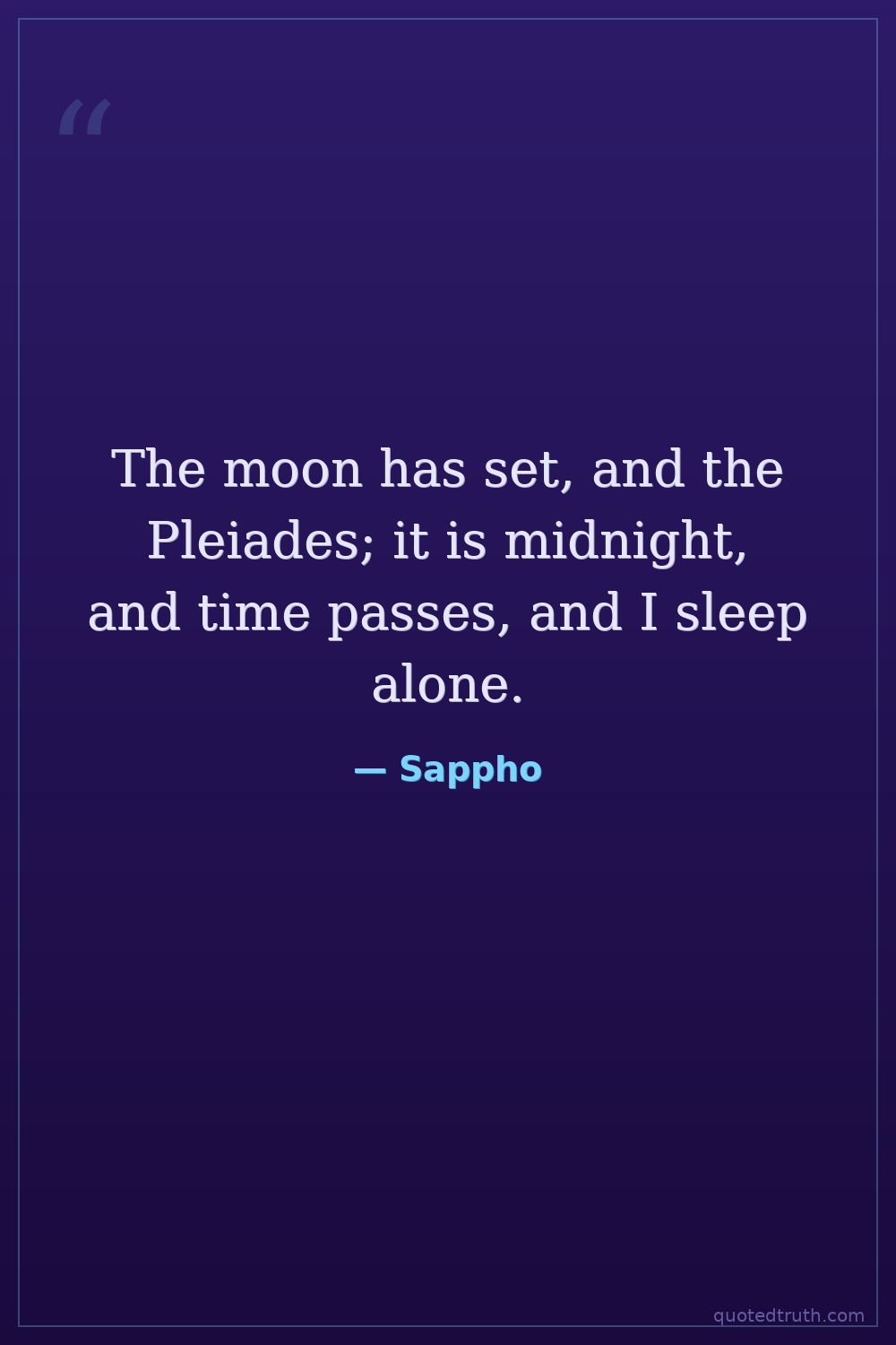 The moon has set, and the Pleiades; it is midnight, and time passes, and I sleep alone.