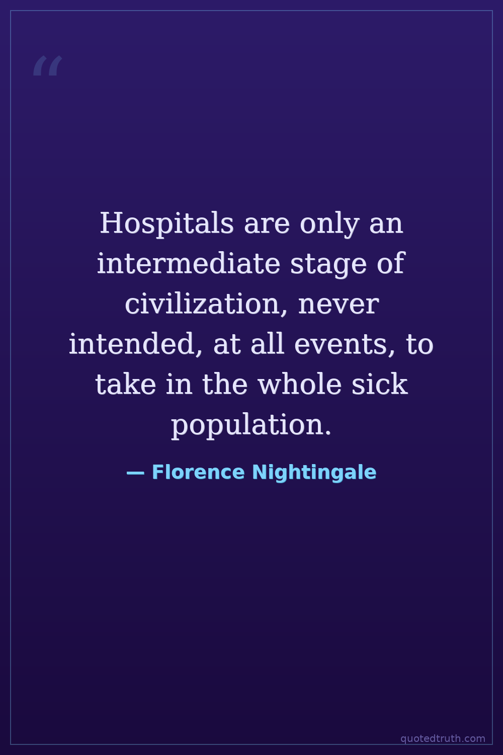 Hospitals are only an intermediate stage of civilization, never intended, at all events, to take in the whole sick population.