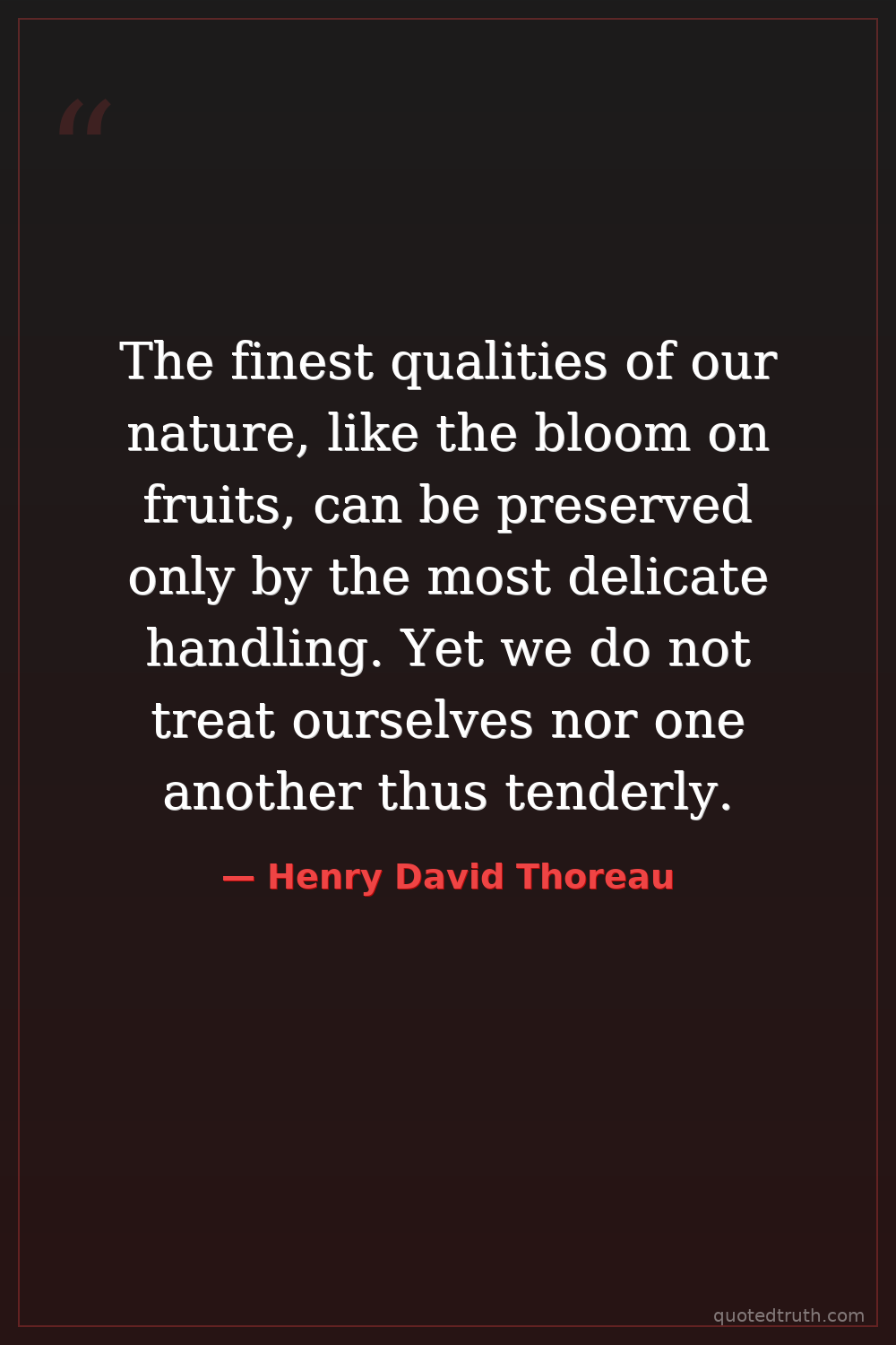 The finest qualities of our nature, like the bloom on fruits, can be preserved only by the most delicate handling. Yet we do not treat ourselves nor one another thus tenderly.