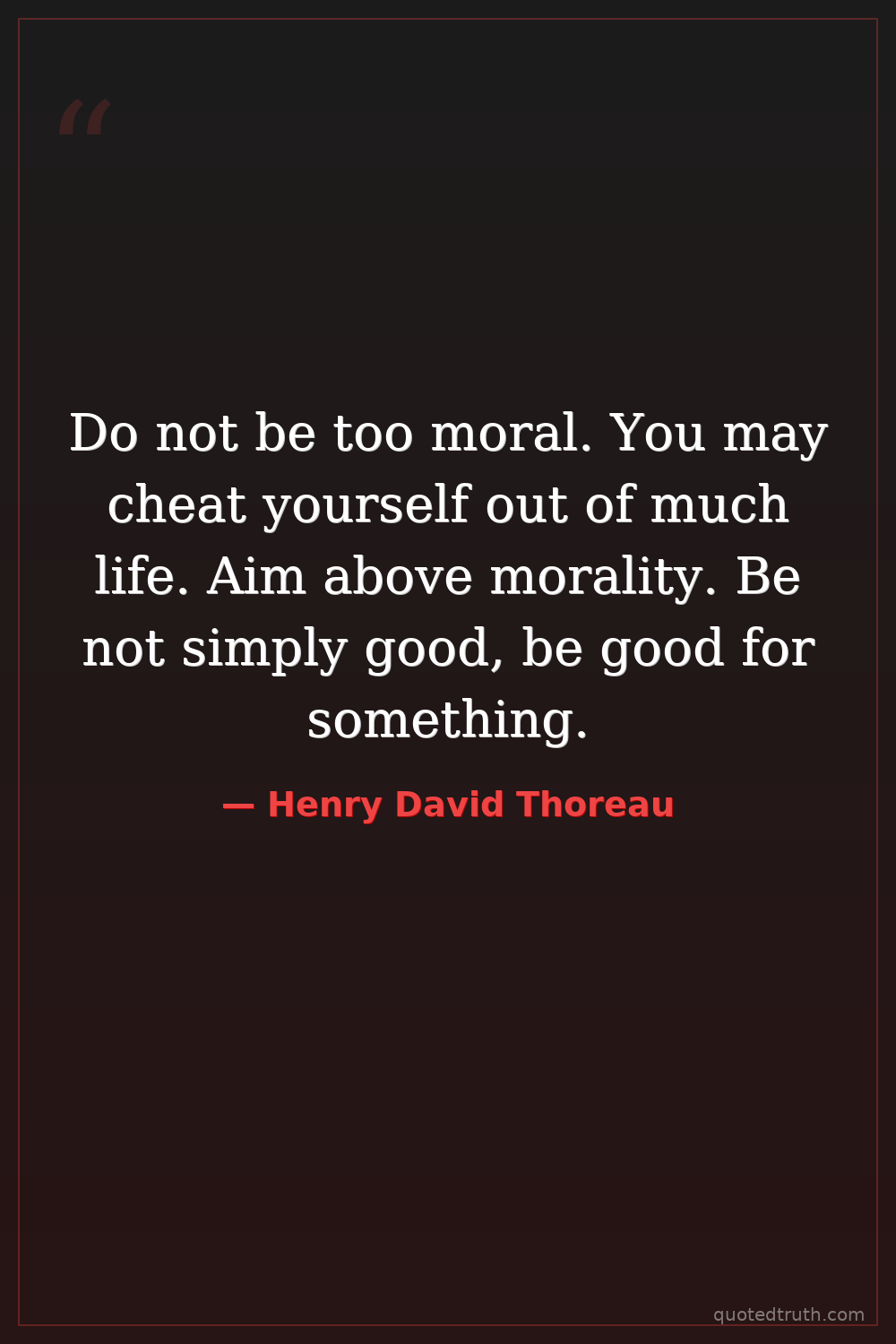 Do not be too moral. You may cheat yourself out of much life. Aim above morality. Be not simply good, be good for something.