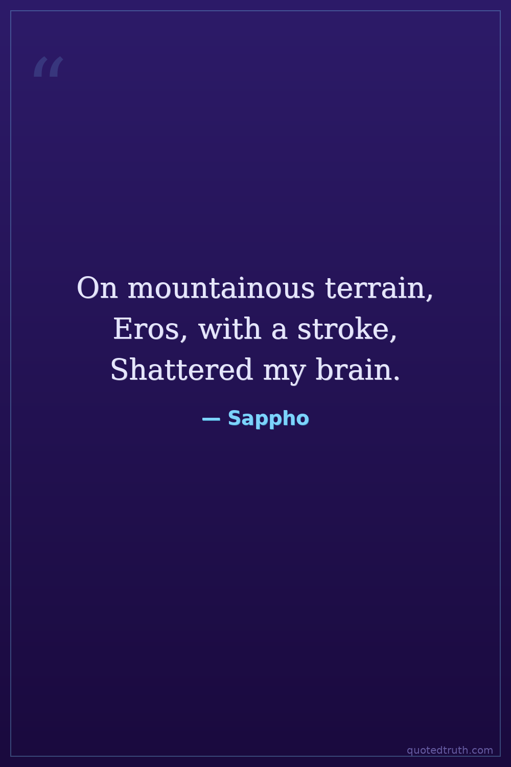 On mountainous terrain, Eros, with a stroke, Shattered my brain.