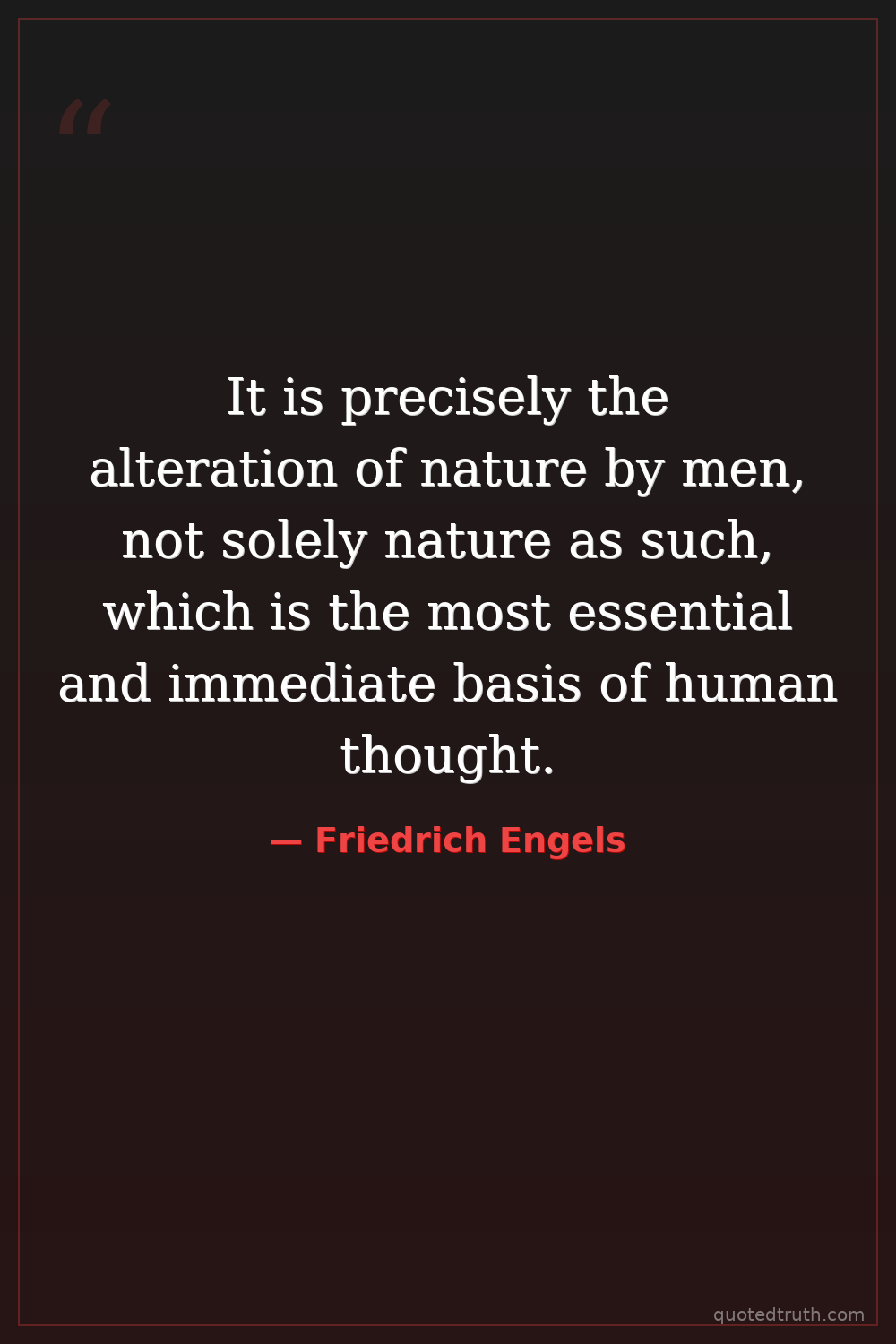 It is precisely the alteration of nature by men, not solely nature as such, which is the most essential and immediate basis of human thought.